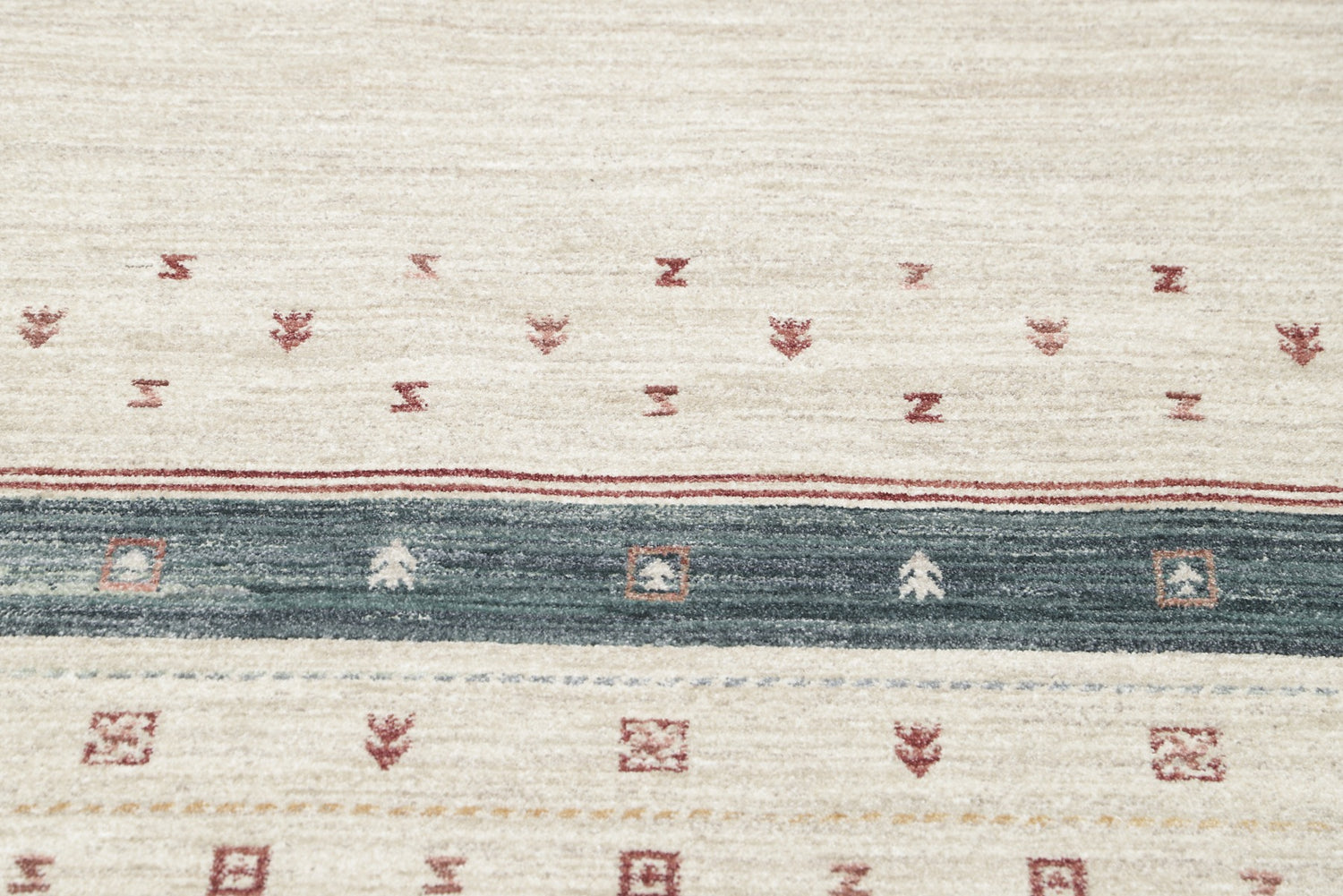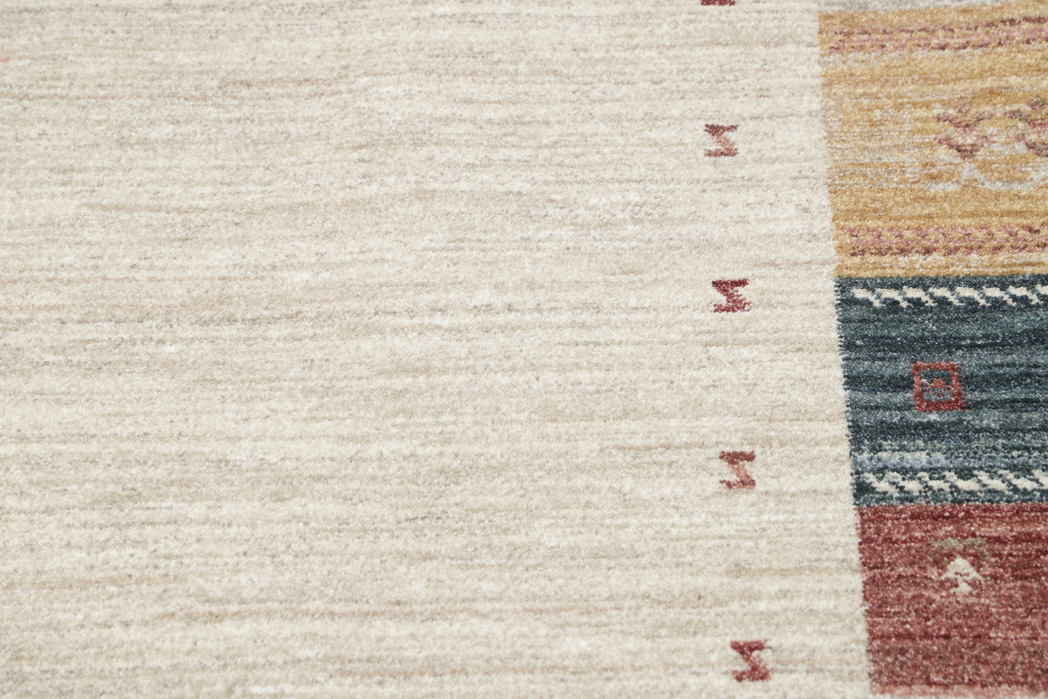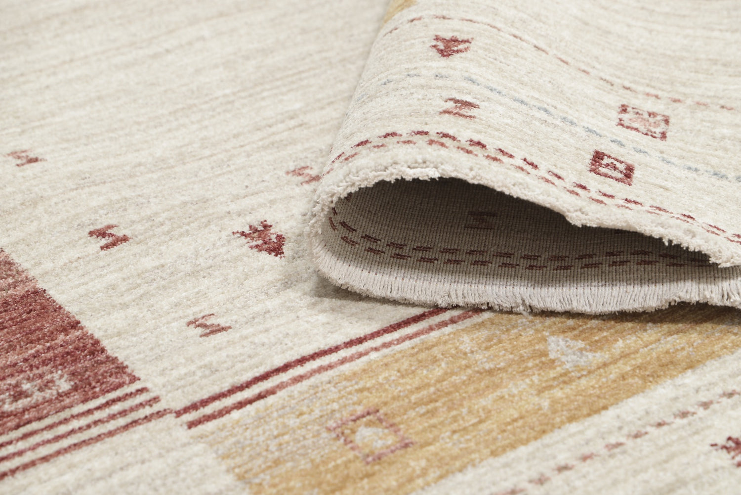 Carpient’s Gabbeh rugs are made using an advanced technique where the fringes are integrated into the woven structure and run throughout the rug, improving both durability and appearance. The material and colours are carefully selected to mimic the most expensive hand-knotted Gabbeh rugs, and the result is a product that is difficult to distinguish from handmade counterparts, even for experts. The rugs are machine-made but of a high quality, making them a long-lasting and durable option. They are designed to provide the same feel and aesthetics as traditional Gabbeh rugs, with a focus on durability and functionality in every detail.